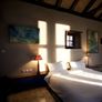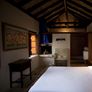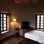 Ευρύχωρα δωμάτια επιπλωμένα με γούστο και παραδοσιακό χρώμα. Το δωμάτιο στο κεντρικό κτίριο διαθέτει μπανιέρα με υδρομασάζ και υπερυψωμένη βεράντα με εξαιρετική θέα στη θάλασσα και τον κήπο. Τα τρία δωμάτια στο κτιριακό συγκρότημα του Πύργου (Πύργος, Θόλος & Αγροικία) έχουν μοναδικό χαρακτήρα το καθένα και βρίσκονται σε άμεση επαφή με τη θάλασσα. Ο Πύργος, με την κυκλική του κάτοψη προσφέρει εξαιρετική πανοραμική θέα προς τη θάλασσα, ενώ ο «Θόλος» με την φωτισμένη αψίδα πάνω από το διπλό κρεβάτι διαθέτει τζάκι, όπως και η «Αγροικία», η οποία επιπλέον διαθέτει μια ιδιωτική βεράντα ανοιχτή στο πέλαγος. Και τα τρία αυτά δωμάτια έχουν διπλό κρεβάτι και προσεγμένα ανοιχτά μπάνια με ντουζιέρα.